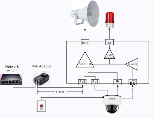 Inside the control box is a power supply and communication module, which connects all components through a PoE network. When the SOS button is pressed, the alarm siren sounds immediately, the red warning light flashes, and the SOC (Security Operation Center) instantly receives the alert signal. The system automatically identifies the exact location of the triggered unit, ensuring a quick and accurate response by the local authorities.