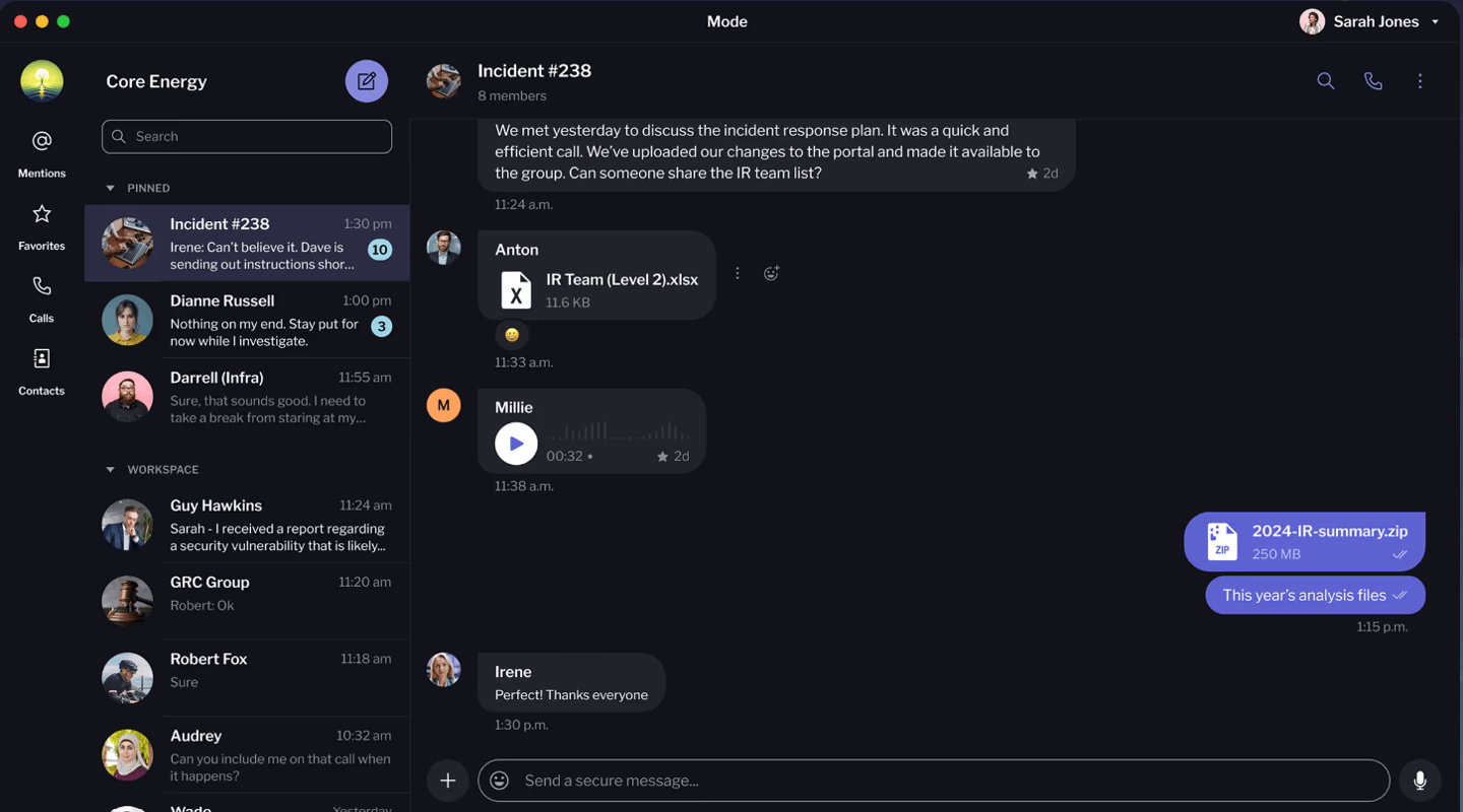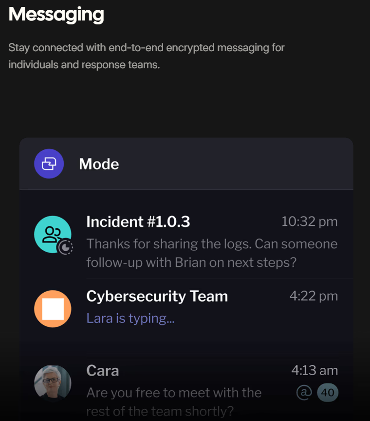 Mode is your out-of-band communication and crisis collaboration platform. Maintain control, security, and speed in your response.