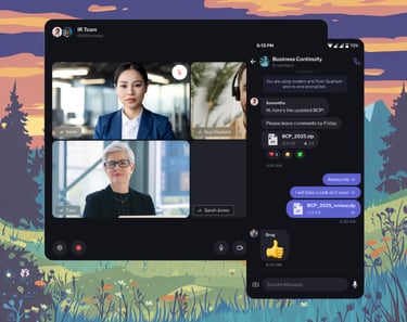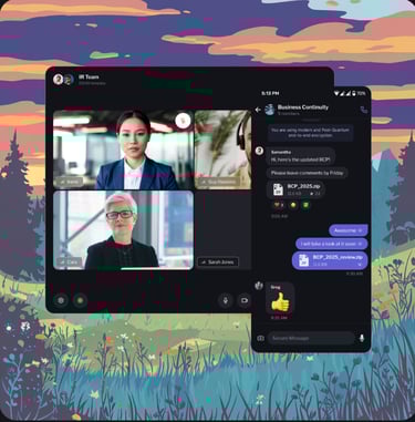Post-quantum end-to-end encryption for communication confidentiality.